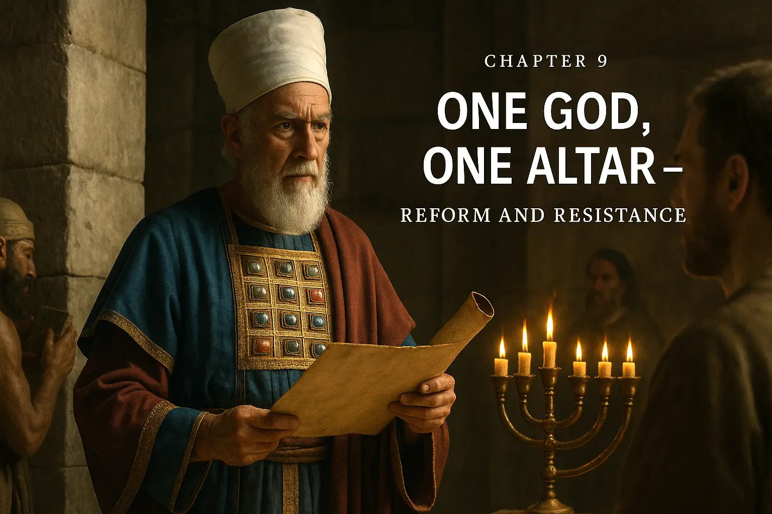 In Chapter 9: One God, One Altar — Reform and Resistance, the story of Josiah moves from discovery to dominion. What began with a scroll in the Temple becomes a full-blown religious purge. Josiah isn’t just reforming faith—he’s reshaping the kingdom.